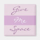 We all need some space, whether it's first thing in the morning before the first cup of tea or coffee, or during a solitary moment of thought later in the day. Here's an elegant way to pass on the message that you need some alone time with the words Give Me Space in a script font against a delicate mauve background.