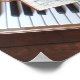 There’s a freshly cut red rose on this old hymn book. The music is open at “Where is my Wandering Boy?†and also “Give Me thy Heart.†Underneath you see the tuning pins, felts and keyboard of the grand piano.