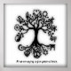 A we are saying is give peace a chance. Soft grey and black tree of life with religious symbols representing peace, unity, harmony.