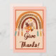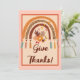 Give Thanks Autumn Rainbow Fall Text Flowers And Hearts Happy Thanksgiving Day Card.