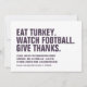 Eat turkey, watch football, give thanks. Designed to coordinate with the Lea Delaveris Design modern Give Thanks collection, this Thanksgiving invitation with bold plum purple text can be edited to suit your own sense of humour or style. It is also available as a digital Thanksgiving invitation download.