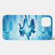 An out-of-the-ordinary, simple, blue and white fractal suggesting a meltwater lake in a valley between glacier-covered mountains. Add your own text.