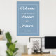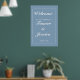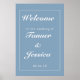 Pretty, modern, minimalist and trendy wedding design features 2022 colour palette of glacier lake blue background with white customisable text blocks in modern fonts