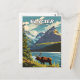 Glacier National Park illustration retro Decorative Postcard.