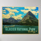 A beautiful blue sky sets of the mountains of Glacier National Park in this fun vintage-look travel design.