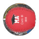 Stylish GRADUATION Baseball showing CUSTOMIZABLE details for TWO photos, placeholder name and monogram, making this the ideal personalised keepsake to celebrate your Graduate. Colour is SCARLET RED for graduates of Law, Divinity, Theology, etc. Other colours available.