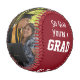 Stylish GRADUATION Baseball showing CUSTOMIZABLE details for TWO photos, placeholder name and monogram, making this the ideal personalised keepsake to celebrate your Graduate. Colour is CRIMSON RED for graduates of Communication, Journalism, etc. Other colours available.
