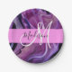 Glam Abstract Purple Shimmer Texture Pink Monogram Paper Plate