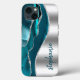 Glam Agate Geode Metallic Silver Teal Name Case-Mate iPhone Case