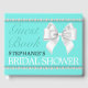 Glam Aqua Tiffany Theme Bridal Shower Guest Book for the bride to be who has everything. This is part of our elegant tiffany theme birthday party collection. Find everything you need for the perfect teal, pearls and white bow all the way down to a little black dress!