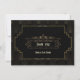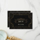 Glam Art Deco Black Gatsby 1920s Style card design. It features Art Deco style, faux gold foil shape and ornaments, gorgeous vintage fonts, on a gold art deco background. Use Customise tool to add your info. For matching items, please, visit my Gold Art Deco Gatsby 1920s Style Collection.