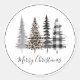 Add a trendy touch to your holiday packaging with this sticker featuring a mix of leopard print and buffalo plaid Christmas trees among modern grey evergreens. Perfect for sealing Christmas cards, decorating gift wrap, or holiday party favours. A stylish mix of rustic and chic for Christmas packaging.