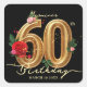 Glam Black Gold Red Rose Floral 60th Birthday Square Sticker
