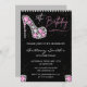 Glam Black Pink Silver Diamond 34th birthday Invitation