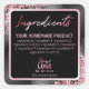 Glam Black With Pink Glitter Ingredient Labels. PLEASE NOTE: No reflective ink or materials will be used in the making of these labels, they will not reflect any light.