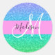 Glam Blue Green Glitter Sparkle Gradient Monogram Classic Round Sticker