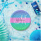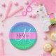 Girly and glam blue, green, aqua and turquoise mermaid glitter sparkles gradient monogram name and initial paper plate. Your custom name and monogram are written in an elegant hand lettered script with a pink background.