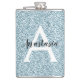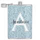 Glam Blue Silver Glitter Sparkles Monogram Name Hip Flask