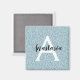 Girly and glam blue silver glitter sparkles monogram name and initial magnet. Personalize with your custom name in an elegant black script and your monogram initial in white. You can change the text color and font style and size using the customize option.