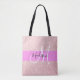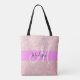 Girly and glam blush pink rose gold glitter sparkles white monogram name and initial tote bag. Your custom name and monogram are written in an elegant hand lettered script with a pink background. A perfect birthday or Christmas gift!