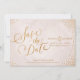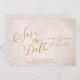Glamour faux glitter rose gold hand lettering calligraphy save the date design and rose gold dots confetti on pastel blush pink watercolor background, pretty shimmer faux metallic rose gold glitter effect, modern, chic, elegant and classy, perfect for vintage wedding or spring wedding. Custom your own save the date card for your wedding invitation set.