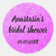 Personalised round sticker for a bridal shower. This glam sticker features elegant black writing and a purple glitter sparkles background. You can personalise it with your name and bridal shower date. You can even change the text colour and font style using the customise option.