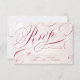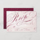 Romantic handwriting calligraphy script in faux burgundy glitter on subtle blush sparkle bokeh background, elegant and sophisticated, great wedding RSVP cards for luxury wedding, glam vintage wedding, and traditional wedding in spring, fall and winter.