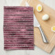 Glam Burgundy Red Rose Blush Glitter Stripes Tea Towel