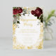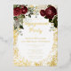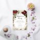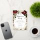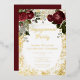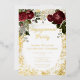 Elegant and classy dark red and burgundy floral roses with seed pearls on a splatter frame "Engagement Party" design by Holiday Hearts Designs. All text is real gold foil and the splatter frame is a combination of gold foil and gold-toned gradient. Seed pearls are faux printed. Background is white on front and burgundy on back.