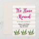 These elegant, modern change of address cards feature a cactus illustration, with dark pink and green text on a neutral striped background, for a glamourous desert look. These cards say "we have moved" in trendy typography, and have plenty of room for your new address information. Striped art from Indie Grace Designs.