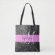 Glam Chic Pink Black Glitter Sparkle Name Monogram Tote Bag