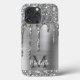 Glam Chic Silver Glitter Drips Monogram Metal Case-Mate iPhone Case