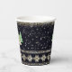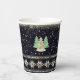 A Nordic-inspired holiday pattern featuring green and metallic trees and snowflakes on a dark background. Folk motifs and subtle shimmer add festive flair to your party drinkware.