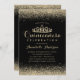 Glam Classic Black Quinceañera Gold Tiara Glitter Invitation