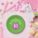 Add a touch of glam to your celebration with this adorable paper plate design! Featuring bold, large name typography and a glittery pink circle showcasing the age, all set against a vibrant green background with glittery purple pink stars, this plate is perfect for any kid's birthday party. Customise the text to make it uniquely yours and elevate your party decor with this stylish and fun design. The festive red and gold theme adds a special sparkle, making your celebration memorable and delightful for all guests. Perfect for birthdays, celebrations, and special events!
