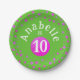 Glam Cool Pink Green Glitter Stars Kid Birthday Paper Plate