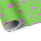 Glam Cute Girly Green Pink Glittery Stars Pattern Wrapping Paper