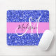 Glam Dark Blue Pink Glitter Sparkles Name Monogram Mouse Mat