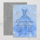 Glam Dusty Blue Silver Glitter Gown Quinceanera Invitation