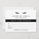 Coordinates with the Glam Eyelashes Black and White Business Card Template by 1201AM. Black eyelashes along with your name or business name create an instant logo on this customisable gift certificate for lash salons. Sophisticated and chic. © 1201AM CREATIVE