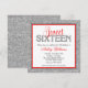 Glam Faux Glitter Silver Red Sweet 16 Invitation