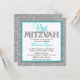 Glam Faux Glitter Silver Teal Blue Bat Mitzvah Invitation
