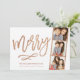 Glam Faux Rose Gold Glitter 3-Photo Booth Holiday Card