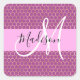 Glam Fuchsia Metallic Pink Honeycomb Monogram Name Square Sticker