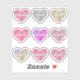 Coquette aesthetic faux glitter hearts, in pink, gold, silver sparkle tones, with 9 custom names for girl team, guest list, bachelorette, bridal shower, birthday, graduate, sweet 16 party supplies, stationary, favour bag envelope seal stickers, crafts, gift wrap...