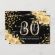 Elegant Glam Gold Black Floral Glitter 30th Birthday Script invitation featuring flower arrangement, glitter confetti and modern typography script.