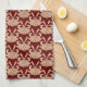 Festive and glam Christmas tea towels features glittery gold bells pattern on dark red background.