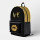 Glam Gold Glitter Lips on Black Initials Printed Backpack