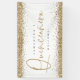 Glam Gold Glitter Name Welcome Quinceañera. Elegant gold faux glitter borders are at the top and bottom. Quinceañera is set in an informal handwriting style and the rest of the text you can easily personalise.