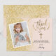 Glam gold glitter thank you first communion photo card
